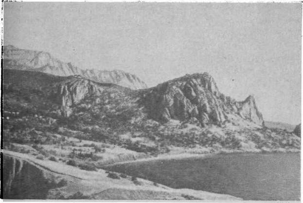 К юрскому же периоду можно отнести и возникновение древнего вулкана Кара-даг (574 м) с группой окружающих его гор, теперь сильно размытых и разрушенных. Южные отвесные склоны Кара-дага круто обрываются к морю.