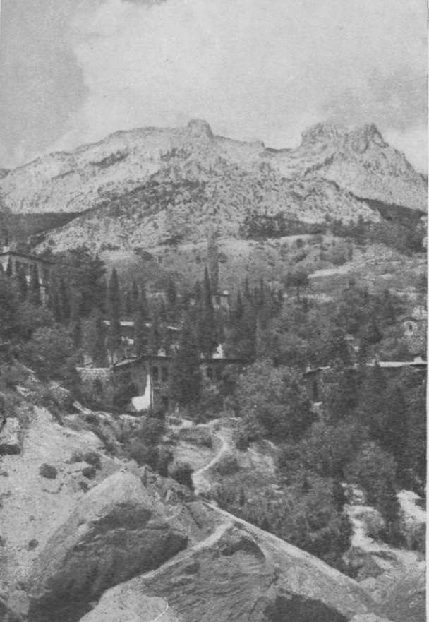 Ай-Петри — одна из наиболее живописных гор Крымского хребта. Ее вершина, увенчанная зубчатой скалой, видна со многих точек Южного берега. На снимке — вид на Ай-Петри из Алупки.